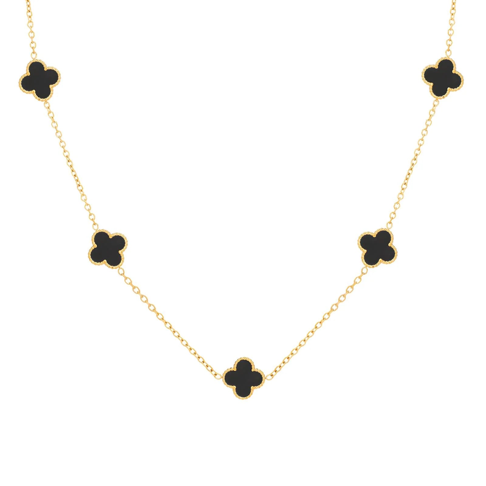 Bring a touch of charm and luck to your style with this elegant Black Clover Necklace. Featuring a sleek four-leaf clover pendant with a glossy black enamel finish, it symbolizes good fortune and timeless beauty. The delicate chain and minimalist design make it perfect for layering or wearing on its own. Ideal as a thoughtful gift or a chic everyday accessory.
