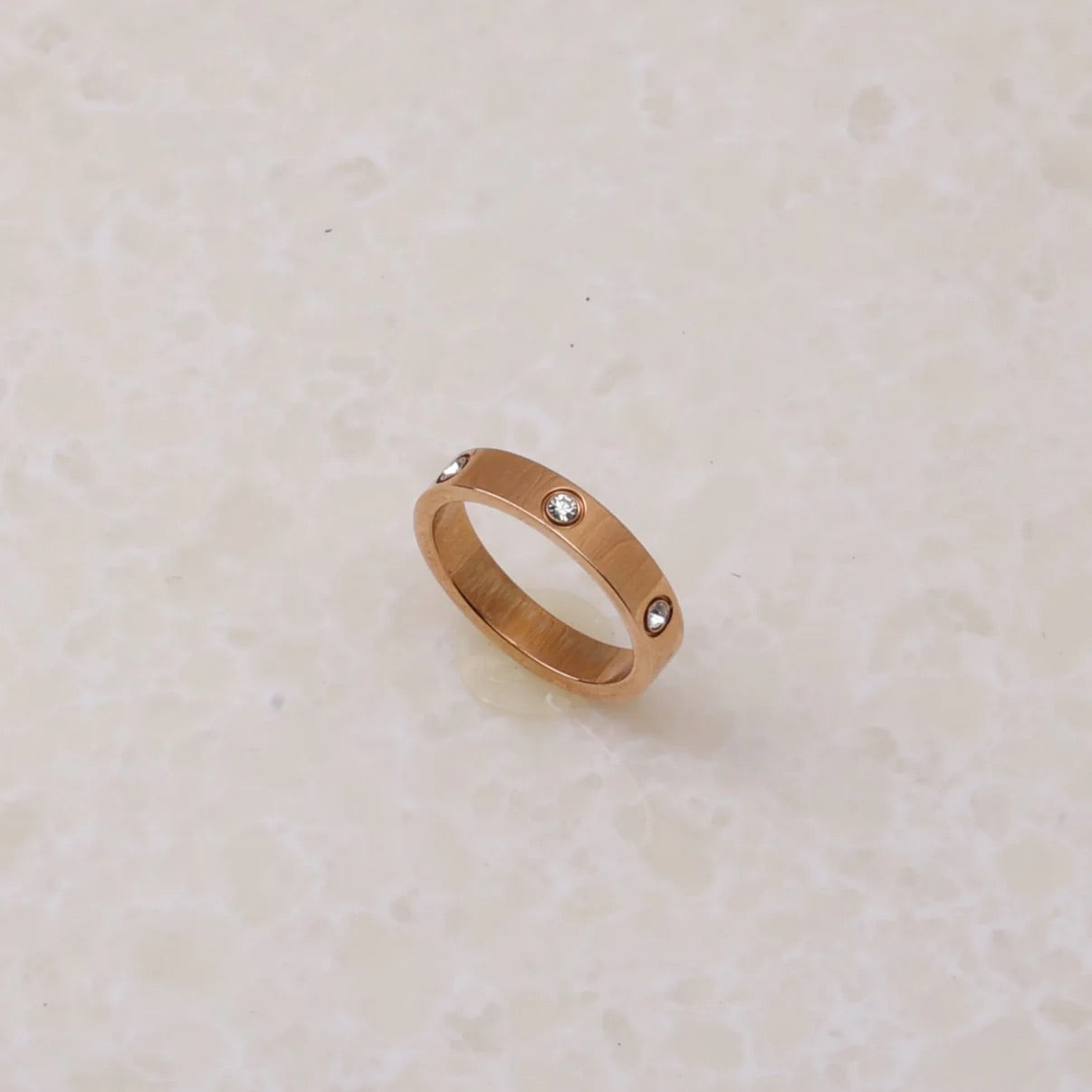 Elegant and refined, the Callie Ring features a slim band adorned with sparkling diamond accents for subtle brilliance. Perfect for stacking or wearing solo, it’s crafted with precision to add a timeless touch to any look. Available in rose gold finishes.
