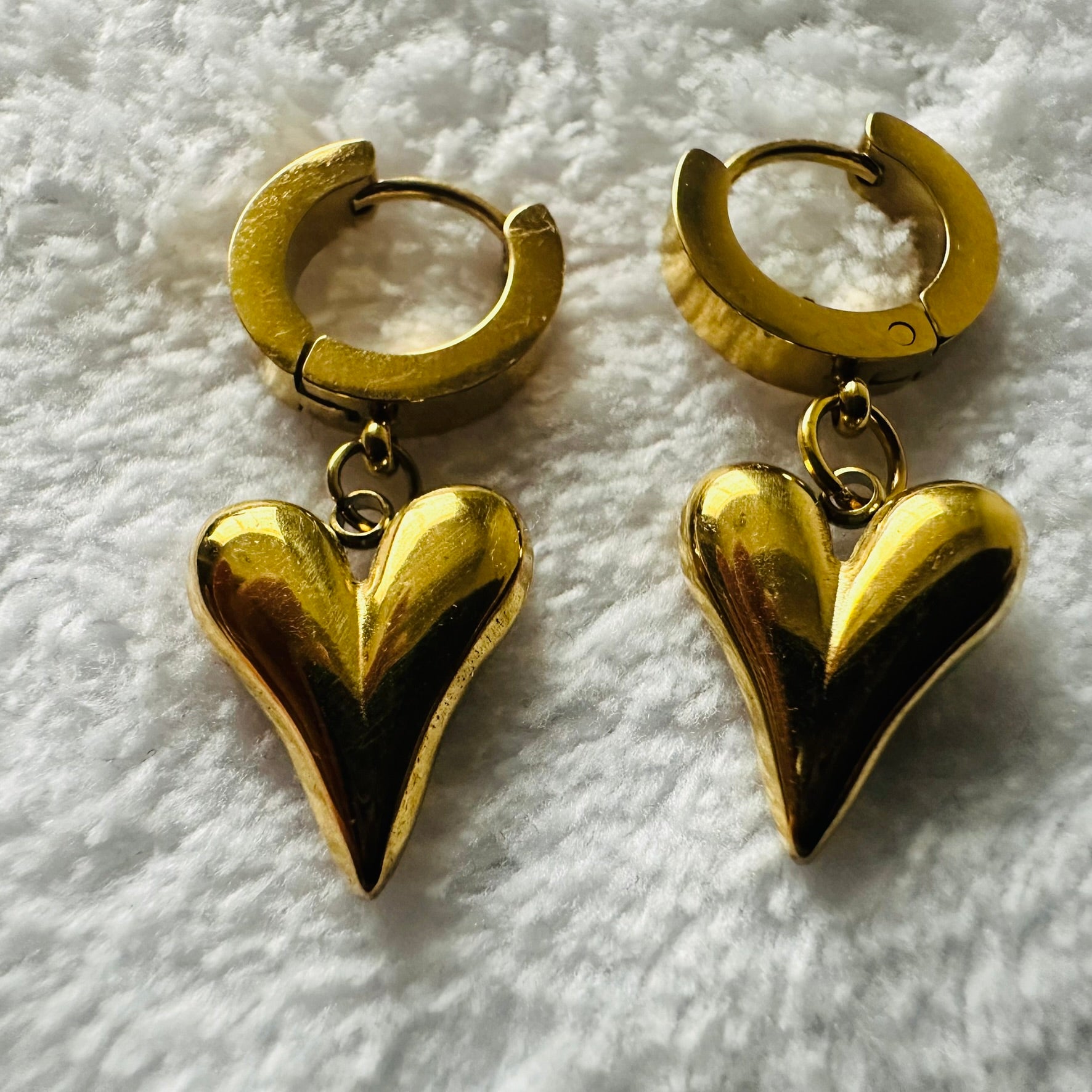 The 18K Gold Plated Heart Earrings are a chic and timeless accessory designed to add a touch of elegance and warmth to any outfit. Crafted with high-quality 18K gold plating, these earrings feature a delicate heart shape that symbolizes love and affection. The radiant gold finish offers a luxurious look, while the simple yet sophisticated design ensures they can be worn for both everyday occasions and special events. Lightweight and comfortable, these heart earrings make an ideal gift for someone special or a beautiful addition to your own jewelry collection.